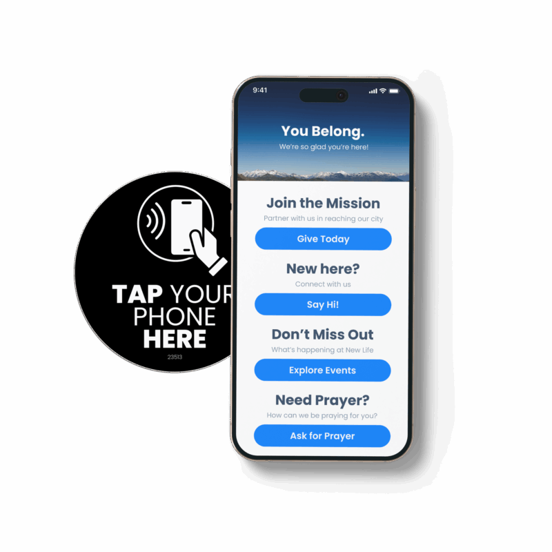 The Pushpay and VisitorReach partnership brings you VisitorTap—an easy way to connect with your church community using NFC technology. One tap gives guests instant access to your giving link, connection card or digital resources. Unlike QR codes, there's no camera positioning or scanning required, helping you easily connect with more people.